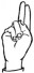 На ћирилици написано КОСТАДИН КРЊИНАЦ састоји се из 15 слова [?]. Исписано ћириличном једноручном азбуком за глувонеме: